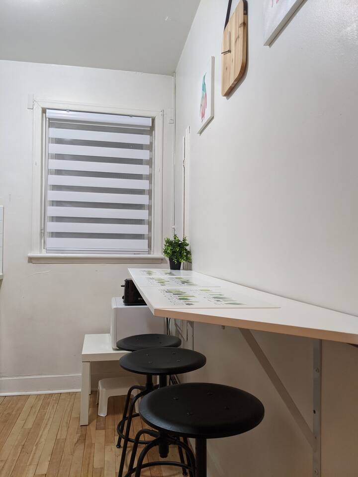 You have access to the entire place: Kitchen, living room/bed room, inside hallway and private bathroom. You won't share my apartment with others. A laundry room is available in the basement downstairs for 2$/use.